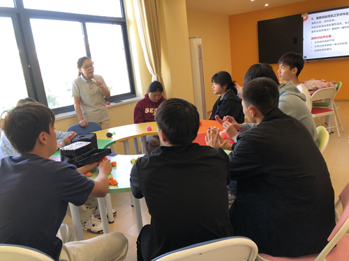 接下來是減壓環(huán)節(jié)。甄老師給大家分發(fā)了減壓“小番茄”,邀請同學們捏“小番茄”來表達不同的情緒。在這一環(huán)節(jié)中,同學們放松自我、展開笑容,開始沉浸地享受活動。顯而易見,同學們得到了很好的釋放。
