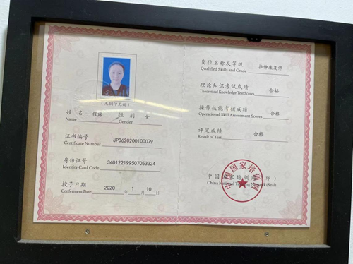 同年,2015年獲得中華人民共和國國家體育總局頒發(fā)的一級運動員證書。