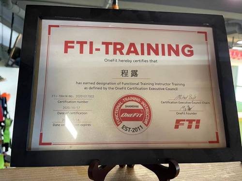 同年,2020年10月參加ONE FIT功能性訓(xùn)練。完成全部學(xué)課,頒發(fā)證書。