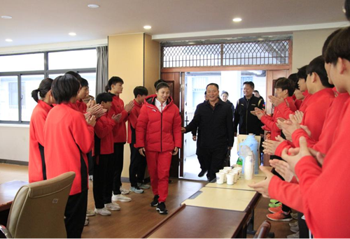 合肥體育運動學校黨總支書記、校長阮仁海向大家介紹了冠軍朱海蘭的基本情況和取得的榮譽。緊接著合肥市體育局黨組成員、副局長孫根友宣讀合肥市體育局賀信。賀信表達了市體育局對朱海蘭的慰問,高度贊揚朱海蘭頑強拼搏的精神,也期望朱海蘭能夠再接再厲、再展風貌、為國爭光。
