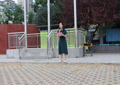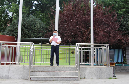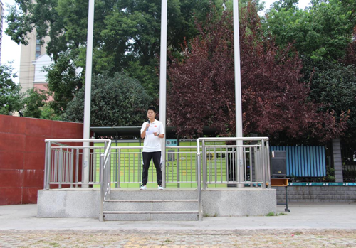 伴隨著激昂的《義勇軍進(jìn)行曲》,在全校師生的注目下,五星紅旗冉冉升起。站在莊嚴(yán)的國旗下,師生們神情嚴(yán)肅,面對(duì)鮮紅的國旗,面對(duì)新的起點(diǎn),心中充滿無限的憧憬。
