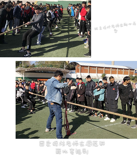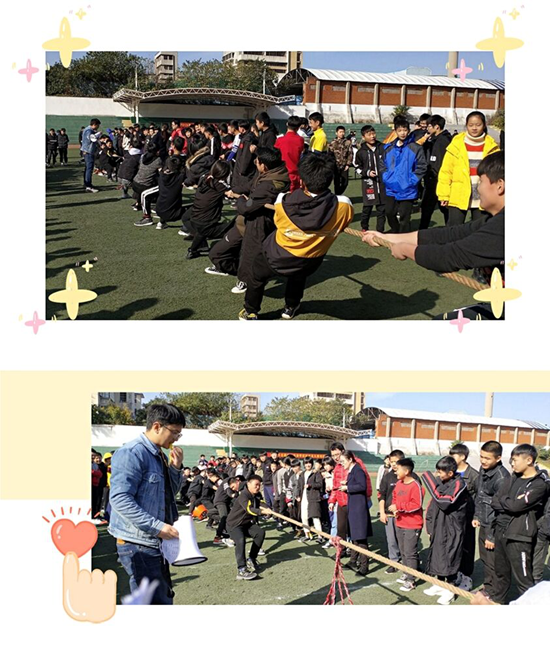 為豐富我校學(xué)生的精神文化生活,促進(jìn)同學(xué)之間交流,發(fā)揚(yáng)團(tuán)隊(duì)合作精神,增強(qiáng)班級(jí)凝聚力,2019年11月19日上午由校團(tuán)委、校文體教研組共同組織的拔河比賽在田徑場開賽了!參賽隊(duì)伍以班級(jí)為單位,分為初中部和中專部兩個(gè)組別,每班組織一支隊(duì)伍(按比賽規(guī)定人數(shù))進(jìn)行循環(huán)賽和決賽。