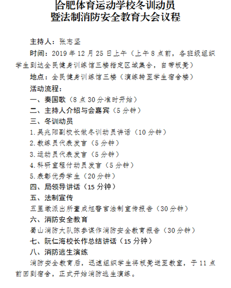 合肥體育運動學校冬訓暨法制消防安全教育大會勝利召開