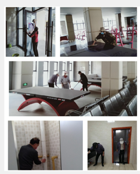 三、全面落實(shí)疫情防控工作措施??倓?wù)處組織工作人員對(duì)乒乓球場(chǎng)館進(jìn)行全方位的清掃、消毒工作,無(wú)論是辦公室、監(jiān)控室等辦公區(qū)域,還是場(chǎng)館、走廊、衛(wèi)生間等公共區(qū)域,他們都對(duì)其進(jìn)行了細(xì)致認(rèn)真地清掃、消毒,“大到乒乓球館的場(chǎng)地消毒,小到地膠、球網(wǎng)、球架、休息椅、更衣柜、體重秤、洗手盆、鏡子、門(mén)把手等小物件,工作人員都一一地進(jìn)行了徹底清掃消毒,保證不留死角。為下一步健身場(chǎng)館對(duì)外開(kāi)放做好了充分的準(zhǔn)備。