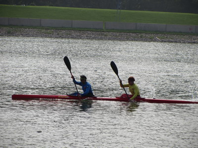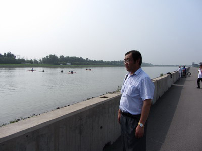 合肥市體育局局長(zhǎng)李殊、合肥體育運(yùn)動(dòng)學(xué)校校長(zhǎng)藺登峰,在皮劃艇訓(xùn)練基地觀看吳亞男賽前訓(xùn)練。