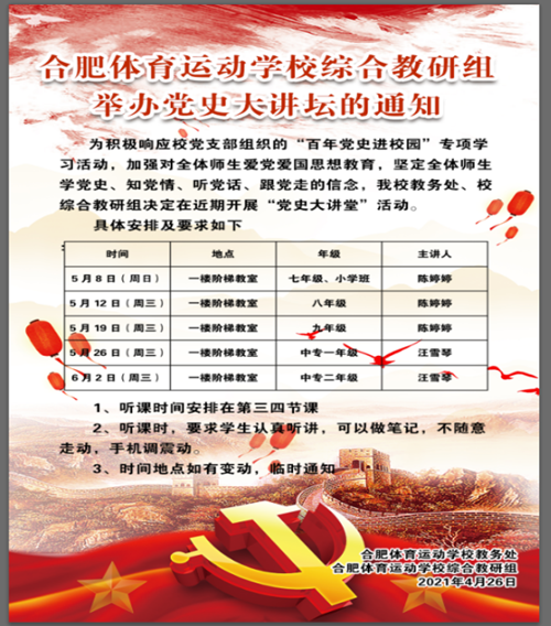此次黨史大講堂活動也是積極響應(yīng)校黨支部組織的“百年黨史進(jìn)校園”主題學(xué)習(xí)教育,一共分為五場,我們將在本次課后征求學(xué)生意見,不斷改進(jìn)授課內(nèi)容,爭取讓本次師生黨史主題學(xué)習(xí)教育達(dá)到預(yù)期效果。