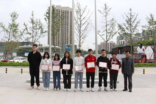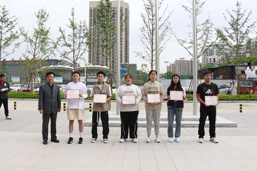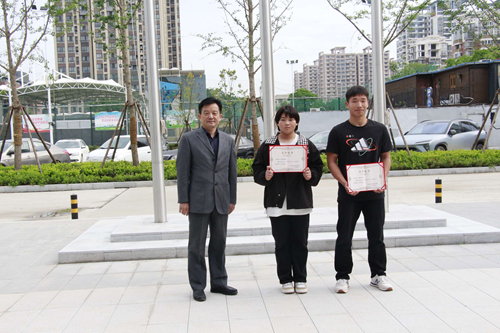 阮仁海校長、張志堅(jiān)副校長分別為獲獎(jiǎng)同學(xué)頒發(fā)獎(jiǎng)狀和證書。