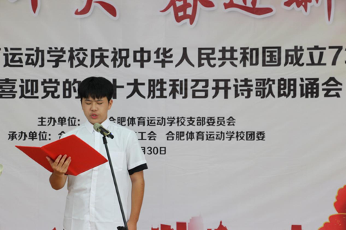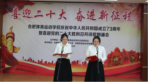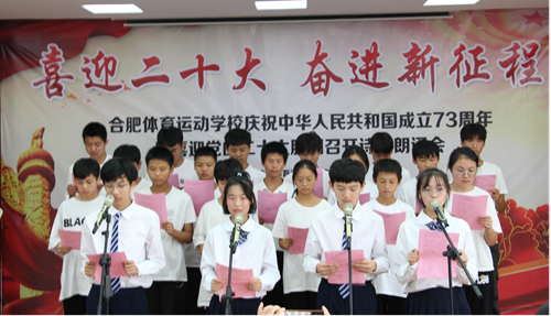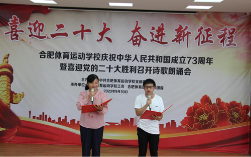 “喜迎二十大,奮進(jìn)新征程”——合肥體育運(yùn)動(dòng)學(xué)校支部組織慶祝中華人民共和國(guó)成立73周年暨喜迎黨的二十大勝利召開(kāi)“黨建+團(tuán)建”主題詩(shī)歌朗誦會(huì)