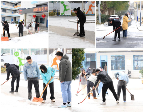 風(fēng)雪中,黨員干部及教師志愿者積極發(fā)揮先鋒模范作用,主動擔(dān)當(dāng),迎“雪”而上,掃出一條條“平安路”,在風(fēng)雪中構(gòu)筑起暖心屏障,為師生員工的安全出行提供了堅實的保障。