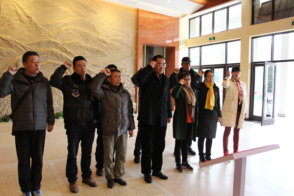 12月6日,我校全體黨員前往蜀山烈士陵園瞻仰和緬懷先烈,接受精神洗禮。圖為黨員在宣誓,重溫誓詞。