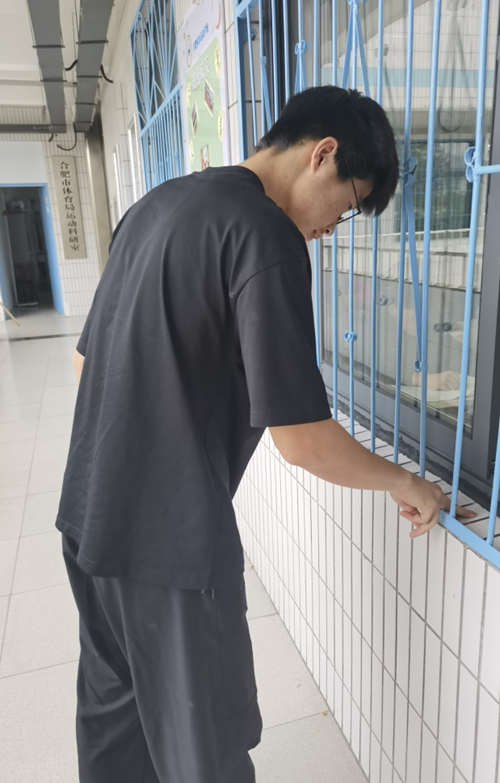 快瞧,這位男生正在仔細(xì)地檢查班級(jí)的衛(wèi)生。他是梁鵬,一個(gè)帥氣,低調(diào)的男孩。每周三放學(xué)后,他都會(huì)自覺(jué)承擔(dān)起檢查本班衛(wèi)生和為其他班級(jí)評(píng)分的工作。做好這項(xiàng)工作需要責(zé)任心,需要與人溝通的技巧,同時(shí)也需要做出一些“犧牲”。在其他同學(xué)悠閑地享用午餐的時(shí)候,他不辭辛勞地幫助班主任老師檢查本班的衛(wèi)生,做最后的“質(zhì)檢員”,為各班的衛(wèi)生情況評(píng)分,完成學(xué)校布置的工作。他低調(diào)的做好自己的工作,從不嫌累,毫無(wú)怨言。