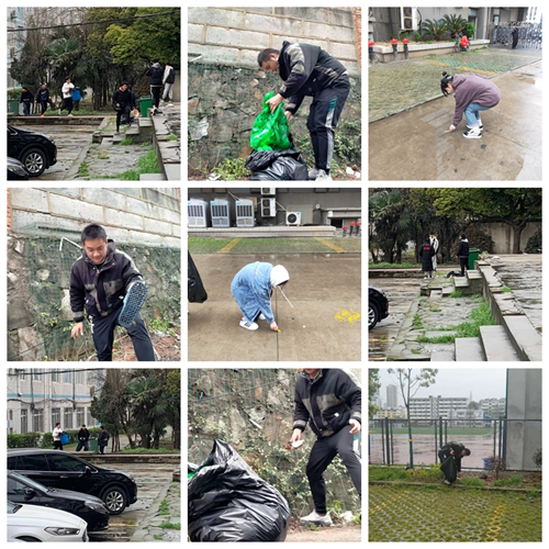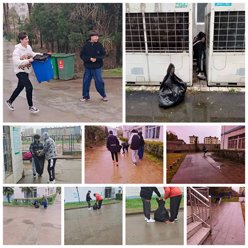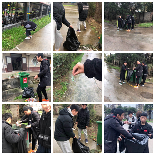 雖然天空飄著小雨,但絲毫不能影響同學(xué)們的熱情,他們的身影出沒(méi)在教學(xué)樓、宿舍樓、訓(xùn)練館、食堂等地方,也出現(xiàn)在平常不會(huì)踏足的衛(wèi)生死角。大家不怕臟、不怕累,自覺(jué)把垃圾等撿拾、裝袋,并將打包好的垃圾袋統(tǒng)一放在指定的位置。