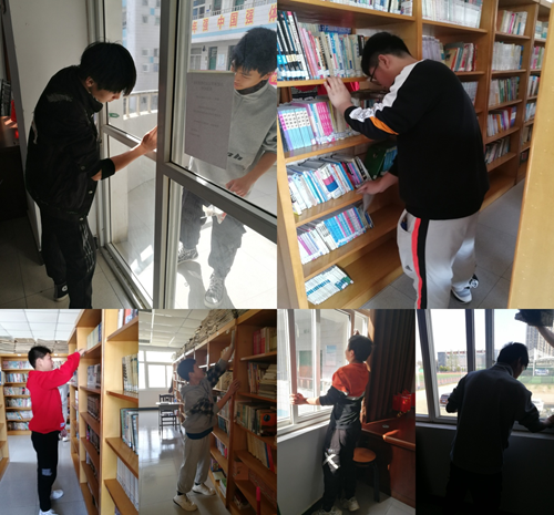 3月29日上午第二節(jié)課,同學(xué)們拿起清潔用具,來(lái)到教學(xué)樓二樓的圖書(shū)閱覽室,進(jìn)行衛(wèi)生清掃志愿者活動(dòng)。他們或擦窗,或掃地,或拂去書(shū)架上的浮塵,忙的不亦樂(lè)乎。