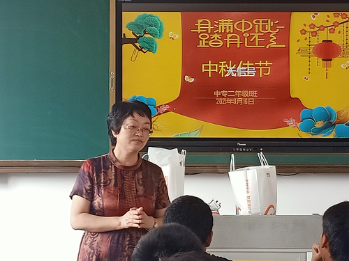 根據(jù)學(xué)校意識形態(tài)工作計劃,在教務(wù)處、團委的支持下,20級1班以中秋佳節(jié)為契機,開展“月滿中秋、踏月還鄉(xiāng)”主題教育活動,從中秋佳節(jié)的由來、習(xí)俗等方面,促進學(xué)生對傳統(tǒng)文化的了解與認識,提升對傳統(tǒng)文化的熱愛。黨支部書記陳瑛、副校長陳燕出席參加活動。