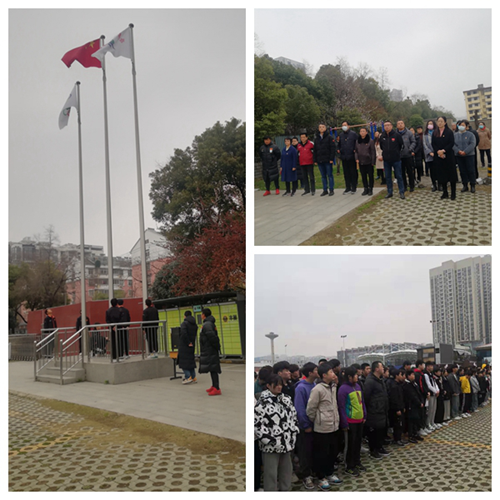 隨著莊嚴的國歌聲,六名來自中專一年級1班的護旗手、升旗手,面朝國旗,莊嚴肅穆,目光隨著鮮艷的五星紅旗徐徐升起,全體黨員、師生齊唱國歌。