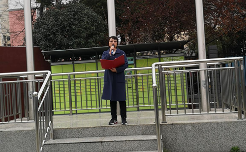上午8點整,2021年春季新學期第一次升旗儀式在校園廣場隆重舉行,全體黨員、師生參加。升旗儀式由校團委書記董亮主持。升旗儀式前,董亮書記向全體師生介紹了我校副校長王欣同志。
