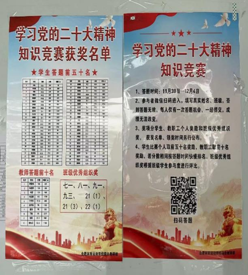 通過這次活動,加深了全體師生對黨的二十大精神的認(rèn)識,調(diào)動了廣大師生學(xué)習(xí)二十大精神的積極性,達到了以競賽促學(xué)習(xí)、以學(xué)習(xí)促黨建目的,為我校進一步學(xué)習(xí)宣傳貫徹黨的二十大精神營造了濃厚氛圍。