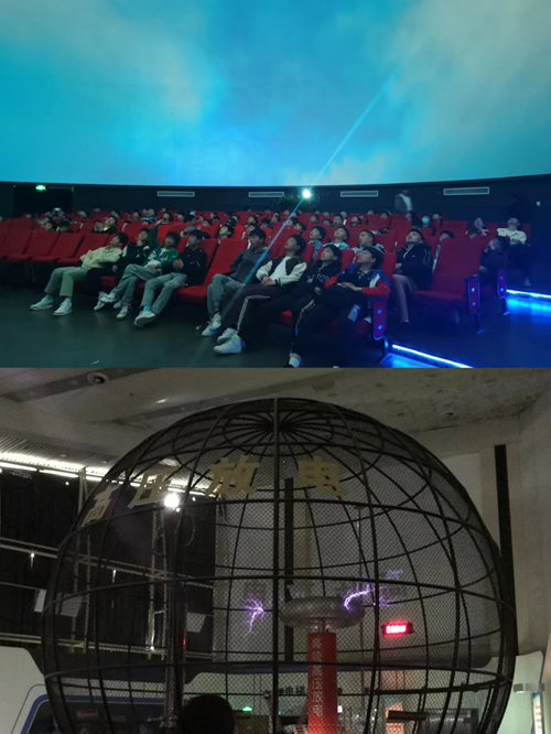 學(xué)生們有序進(jìn)入科技館內(nèi)參觀游覽。同學(xué)們先是在球幕電影院內(nèi)感受了《冰的世界》,接著又親眼看見(jiàn)高壓放電的震撼場(chǎng)面。大家紛紛驚嘆不已。在視聽(tīng)展館里,大家玩得不亦樂(lè)乎,“離心轉(zhuǎn)盤”“靜電感應(yīng)”“聲波共振”“虹橋”……一個(gè)個(gè)科普儀器讓同學(xué)們很是興奮,大家在實(shí)際體驗(yàn)中邊玩邊學(xué),了解其中蘊(yùn)含的科學(xué)原理。