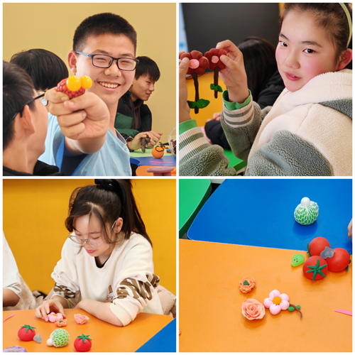 接下來,同學們在甄老師的指導下,從面前的活動桌上拿出自己喜歡的彩色黏土,自由發(fā)揮,以“給自己的禮物”為主題,捏出了一個個作品。作品內容有對過去回憶的珍惜,也有對未來生活的向往,還有對當下生活的思考。