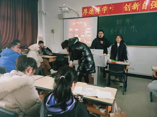 2021年1月6日上午,利用班會的時間開展班級新年活動:牛氣沖天之新年刮刮樂,全班學(xué)生興致高昂,氛圍熱烈,新年喜鬧氣息濃厚。