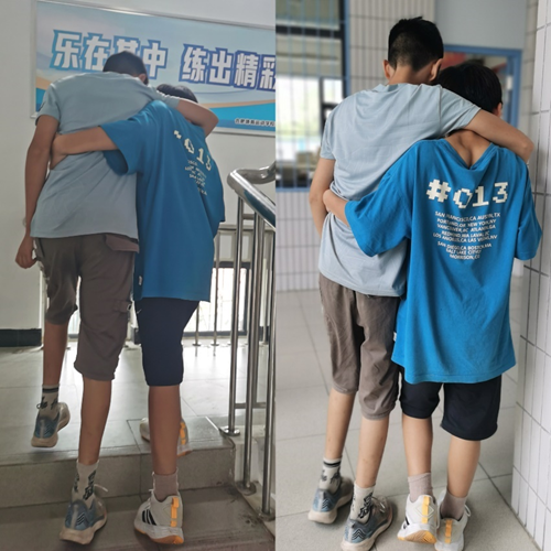 在六月中旬,七二班郭子豪同學(xué)在運(yùn)動(dòng)中不小心弄傷了腳踝,上下樓梯很不方便。同班高文博同學(xué)注意到了他的傷勢(shì),主動(dòng)承擔(dān)起了照顧他的責(zé)任。他將郭子豪同學(xué)攙扶到了辦公室,向班主任老師告知情況并幫他請(qǐng)假,從醫(yī)務(wù)室回來(lái)后又將郭子豪同學(xué)攙扶回宿舍休息,待到情況有所好轉(zhuǎn)后再去醫(yī)院進(jìn)行檢查。在這件事情中我們能看到的是同學(xué)們之間的友愛。這看似平凡卻又不平凡的善舉,在一個(gè)個(gè)孩子心中構(gòu)建了溫暖的橋梁!