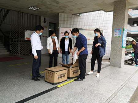 琥珀中學(xué)教育集團龍居山莊校區(qū)來我校檢查初中部教學(xué)工作及贈送防疫物資