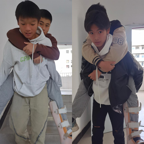 史良棟同學(xué)在訓(xùn)練過程中受傷,腳裸骨折,行動不便。張旭和程啟軒同學(xué)主動承擔起照顧史良棟同學(xué)的任務(wù)。自史良棟受傷以來,兩位同學(xué)輪流背史良棟上下樓,攙扶他外出,幫助史良棟做一些他不便去做的事。