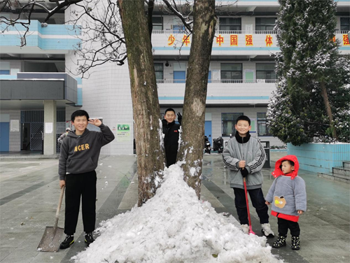 在他們的帶動下,班級很多同學都紛紛投入到積雪清掃的工作中。由于溫度低怕學生們感冒,班主任老師勸說了好幾次,同學們都未曾離開。最終在大家的努力下,同學們用兩個小時終于將地面的積雪清掃的干干凈凈。