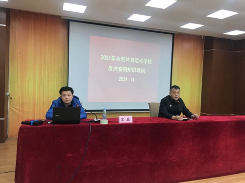 安徽省體育科學(xué)技術(shù)研究所助理研究員、醫(yī)學(xué)碩士宣磊就青少年訓(xùn)練興奮劑防范有關(guān)問題進(jìn)行專項(xiàng)知識講座,合肥體育運(yùn)動學(xué)校分管校長王欣對本次講座作了動員講話。