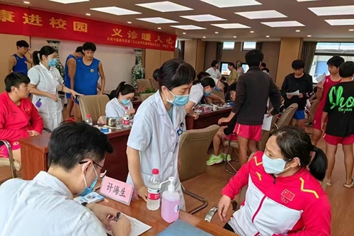 為慶祝中國(guó)共產(chǎn)黨建黨102周年,切實(shí)推進(jìn)學(xué)習(xí)貫徹習(xí)近平新時(shí)代中國(guó)特色社會(huì)主義思想主題教育走深走實(shí),6月28日下午,合肥體育運(yùn)動(dòng)學(xué)校黨總支聯(lián)合安徽中醫(yī)院第二附屬醫(yī)院臨床綜合黨總支、臨床第二黨總支開展慶祝建黨102周年"健康進(jìn)校園,義診暖人心"活動(dòng)。共計(jì)21名醫(yī)護(hù)人員參加了本次義診,為我校師生開展診療180人次。