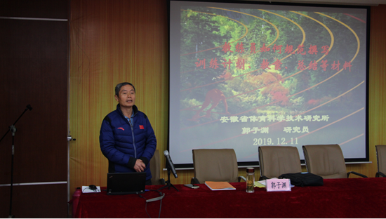 當天上午,由省體育科所專家郭子淵老師進行第一節(jié)授課,郭子淵是國家體育總局運動訓練監(jiān)控與機能評定重點實驗主任,省體育局備戰(zhàn)辦副主任。主要研究方向是運動訓練監(jiān)控,運動員科學選材。