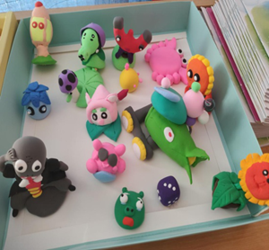 早上九點二十分,班干利用課間十分鐘將班級座位分組擺好,在得知當天具體的活動內(nèi)容之后,學生們都顯得尤其興奮,一個個乖乖圍坐在桌前等待著老師和班干們?yōu)樗麄兎职l(fā)黏土。在拿到黏土后,孩子們就迫不及待的上手進行制作。有些孩子由于沒有找到自己想要的顏色,就開始自己對已有的黏土進行“加工改造”,混合出不同的新的顏色。也有些孩子因為自己所想要塑造的造型外觀太過于復雜,于是就開始向同組的同學進行求助,共同完成手工制作。雖然制作的過程充滿了許多的“小意外”,但最終孩子們制作出的作品確實令人大為驚嘆:各種各樣的形象活靈活現(xiàn)。雖然也有一些作品不夠盡如人意,但孩子們也玩得非常開心。