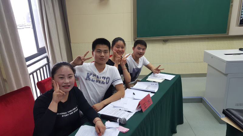 校團(tuán)委接到任務(wù)后,立即開展工作,與各班級班主任共商,通過學(xué)生自薦、班主任推薦的方式選拔參賽選手,最終確定由14(2)班學(xué)生周莉莉(校學(xué)生會主席)、15(4)班學(xué)生常家豪(校學(xué)生會文體部部長)、15(3)班學(xué)生周國陽、15(2)班學(xué)生馬博雯(校學(xué)生會委員)組成的4人辯論小組,指定程付老師作為此次辯論賽的指導(dǎo)老師,董亮?xí)洖轭I(lǐng)隊(duì)。