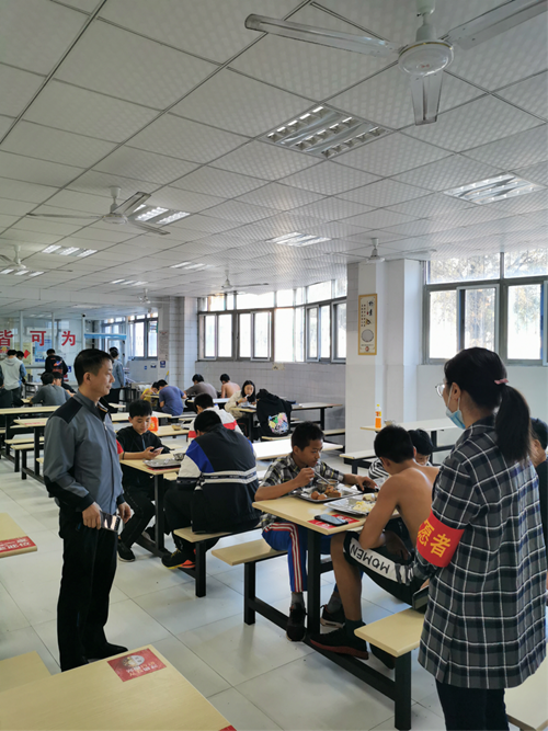 10月12日早上7:30,張志堅校長帶領(lǐng)值班人員前往學校食堂,查看學生早上用餐情況。