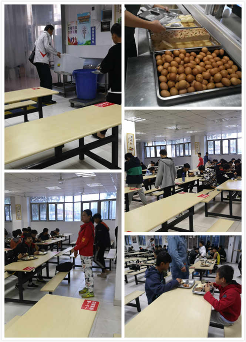 2020年10月15日一早,四名志愿者老師就趕到食堂,此時(shí)的食堂井然有序。雖然學(xué)生加快就餐速度,但依然能保證食堂秩序。今天的早餐是豆?jié){、辣糊湯、雞蛋、饅頭、包子、蒸糕,種類較多,能保障學(xué)生營(yíng)養(yǎng)均衡。