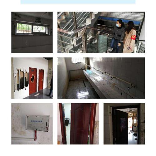 4、學(xué)生宿舍門、床、水龍頭損壞嚴(yán)重,部分墻面瓷磚脫落,學(xué)生宿舍、訓(xùn)練房衛(wèi)生情況有待改善。
