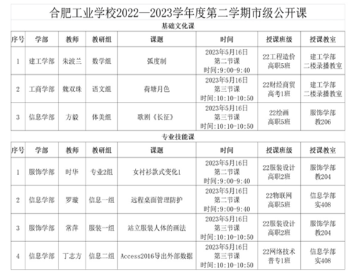 此次公開課包括建工學部朱波蘭老師的《弧度制》、工商學部魏雙珠老師的《荷塘月色》、服飾學部時華老師的《女襯衫款式變化1》、服飾學部常萍老師的《站立服裝人體的畫法》、信息學部方毅老師的歌劇《長征》、信息學部羅璇老師的《遠程桌面管理防護》以及信息學部丁志方老師的《Access2016導出外部數(shù)據(jù)》共七節(jié)精彩課程。