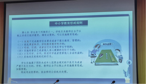 馬錦程律師對(duì)《中華人民共和國教師法》、《中華人民共和國未成年人保護(hù)法》中的重點(diǎn)部分進(jìn)行逐一解讀,對(duì)教師及學(xué)生應(yīng)享有的權(quán)利、履行的義務(wù)等進(jìn)行說明,并分享了很多真實(shí)案例,以案釋法,指導(dǎo)教師依法開展教育懲戒,勿觸懲戒紅線,保護(hù)學(xué)生的身心健康,促進(jìn)學(xué)生的全面發(fā)展。